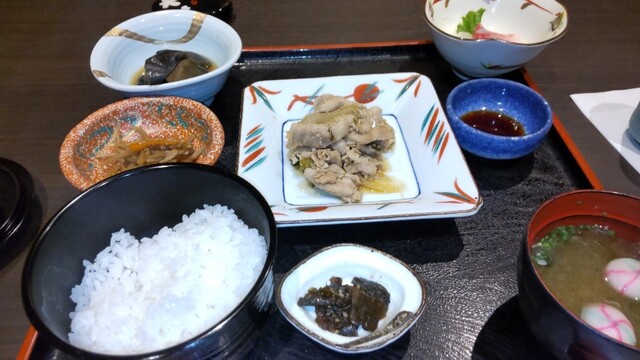 豚肉と野菜の旨煮、野菜小鉢、白飯、漬物、汁