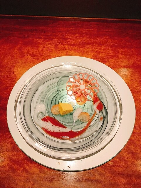 春菊ソースといくらが彩り鮮やかなロワイヤル。