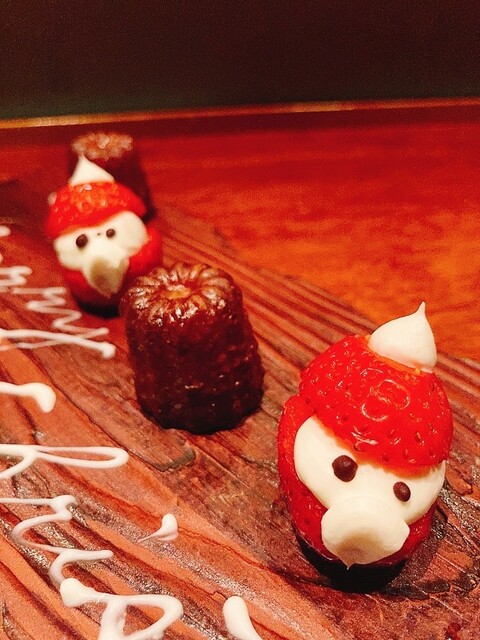 最後のデザートはカヌレとかわいらしい苺のサンタさん♡♡