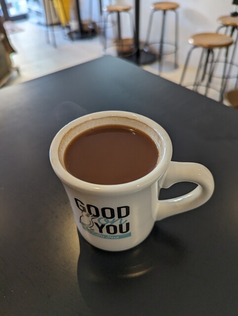 大森駅から10分くらい歩いた閑静な住宅街にあります。近くを車で通りかかり、偶然みつけました。焙煎機、エスプレッソマシーン、食器など全てにこだわりが感じられ、居心地が素晴らしいです。横浜のグッドオンユー...