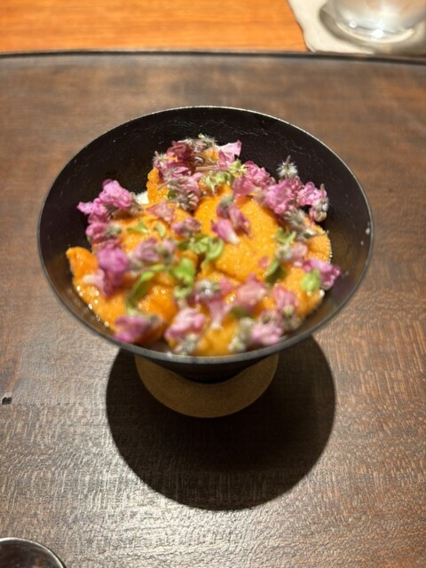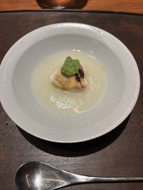 カウンターではシェフが炭火で、お魚や白子やお肉を焼いてるのを見たり、一皿が出来上がっていく様子を眺めながら、皆さまとわいわい楽しい時間を過ごせました♪