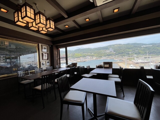 中は開放的で大きな窓からは海が見えてとても綺麗な店内です。