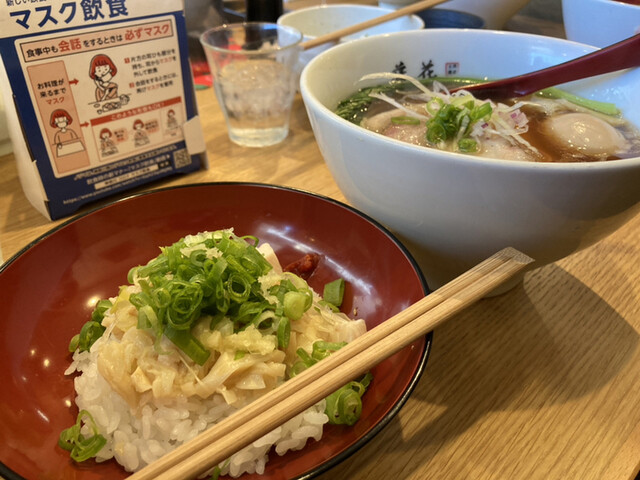 前から気になっていた藤花さんへ行ってきました♪11時オープン前に着きましたが、もうすでに4組待ち。一回転目で何とか入れました。相方さんと特製塩と醤油ラーメンをシェア。特製ラーメンは焼豚、低温豚、鶏焼豚、煮玉子、ワンタン一個が入ったお得なラーメン!塩ラーメンもスープが透き通っていて、深みがあり美味しかった!醤油ラーメンもコクがあり、また一口、もう一口食べたくなる美味しさ!玉子ごはんも玉子が濃厚で、鰹節、ワサビ、柚子胡椒をお好みで入れると味変が出来て美味しかったです!また食べたくなる美味しさでした。