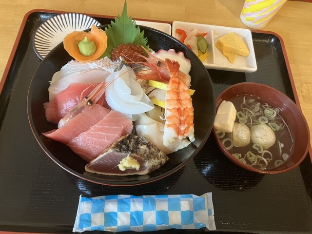 コロナ禍が明けてから、しばらくお食事処閉まっていましたが、昨日はやっていたので久しぶりに海鮮丼を頂きました。以前なかった食券機はカード、IC交通系カードも利用可能でカード派の私には助かります。海鮮丼はこのボリュームで2200円!!鰻重も2200円このご時世に有難い価格(^ ^)つみれ汁もおかわり無料という嬉しいサービス。鰻重もいま4000円以上しますよね。海鮮丼は鮪、イカ、鯛、甘エビ、蒸し海老、かつお、帆立、数の子、いくら、タコ、ホッキ貝が入ってました!築地で食べたら海鮮丼も4000円以上しますね。他のお客様が大穴子天丼を食べていましたがビックリなボリュームで次回こちらも食べてみたいです。美味しいつみれ汁是非おかわりして下さい。