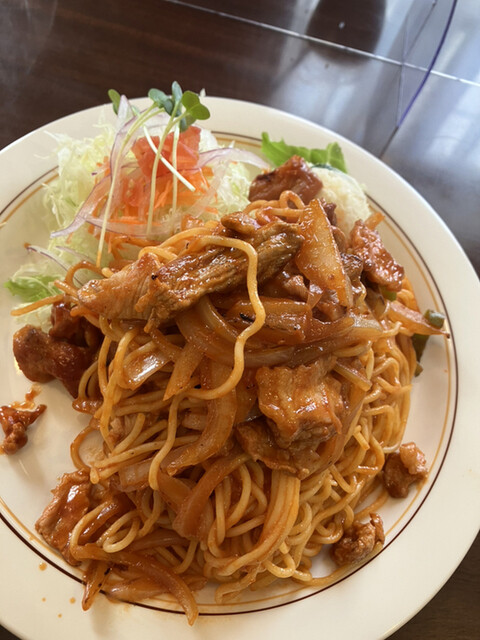 平日の11時過ぎに来店しました。お店は11時オープンなのに、もう店内は賑わっていました。メニューから迫力のある豚肉ナポリと肉惣菜定食を注文!肉惣菜はサイコロステーキ、ハンバーグ、豚カツという贅沢メニュー( ^∀^)♪どれも手が込んでいて美味しい!豚肉ナポリも400gオーバーの重量で、さすがに完食出来なかった。強者はチャレンジしてみて下さい。