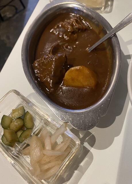扉を開けたら元気な挨拶で迎えてくれました。入ってすぐ券売機があるのでチケットを購入します。ビーフカレーとチキンカレー(チーズ追加)を頼みました。ビーフカレーは甘口で食べやすく、大きなビーフはトロトロ、じゃがいもは蒸したものを入れているのかなと感じました。とても美味しかったです。チキンカレーはスープカレーのようにサラサラでした。こちらもとても美味しかったです。外国人の方2名で営業されていましたが、元気で丁寧で親切でした。また行きたいなと思いました。
