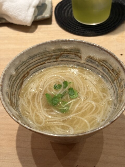 途中で供される鶏出汁のにゅうめんは、専門店として独立しても十分通用するのではと思うほど完成度が高く、滋味深い味わいに感動。