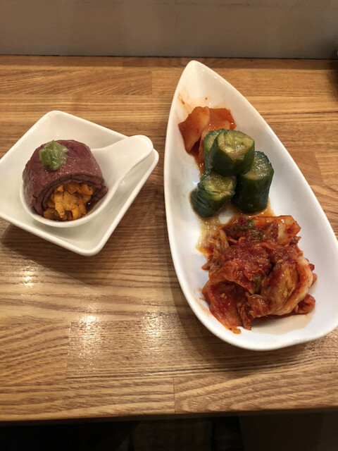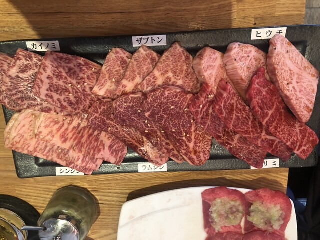 写真以外にも厚切り牛タン、ミノ、厚切りレバー、アギトサラダ、石焼き明太ビビンバ、ジェラートも頂きました。