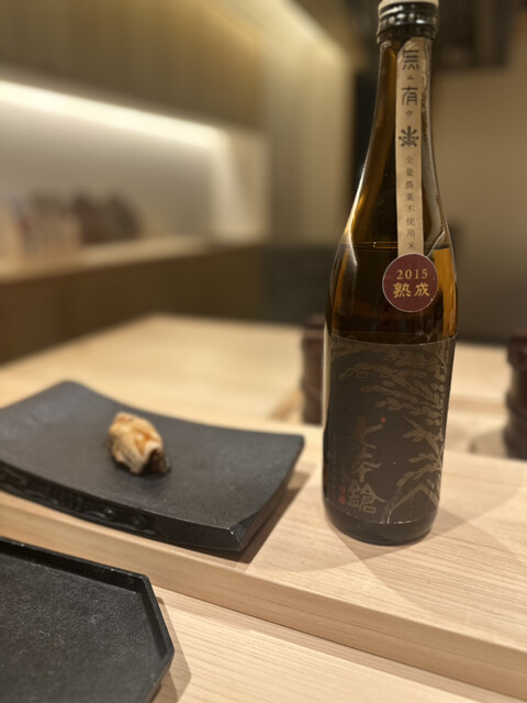 鮑、せりと油揚げのおひたし、メヒカリの唐揚げ、くわいのチップ、あん肝低温調理