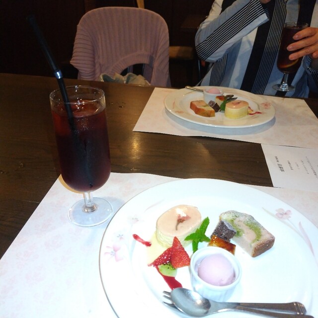 飲み物はアイスティー 紅茶のムースコレはめちゃくちゃ美味しかった〜何時ものコースとは違うけど、量は少なくても旨味が有るのか満足感高いです。お値段2人分ノンアルコールビール入れて7700円でした。ペイペイ支払いしました。