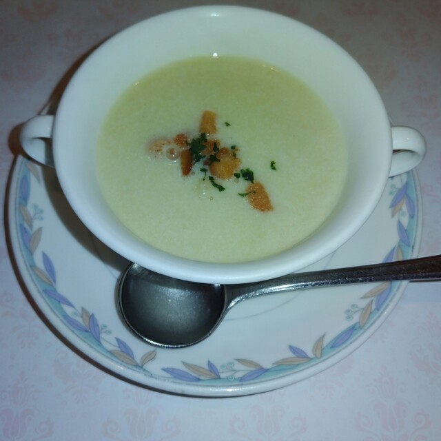 二皿目はパンプキンスープ 何時もながら濃厚な生クリーム…ほんのりパンプキンでした。