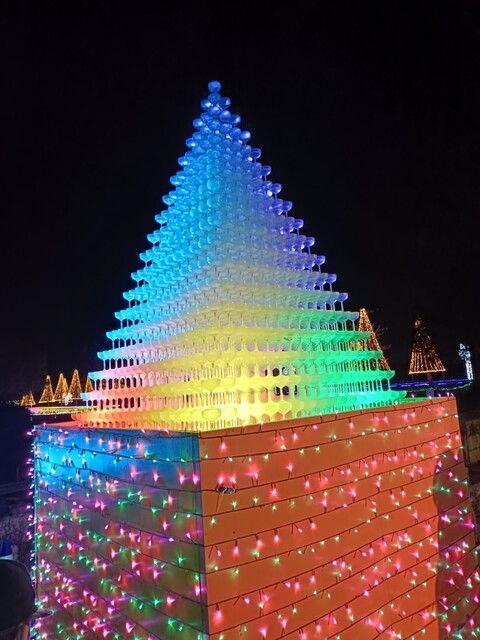 子供達の家族連れとわんちゃん連れた方がいっぱいに見えましたが、最盛期よりはひとはまだまばら、駐車場も警備員さんも居ませんでした。イルミネーションもまだ作りかけかな?まだ空いてるスペースも有りましたが、人が少ないので写メは撮りやすかったです。みなさんも是非 防寒対策はしっかりと