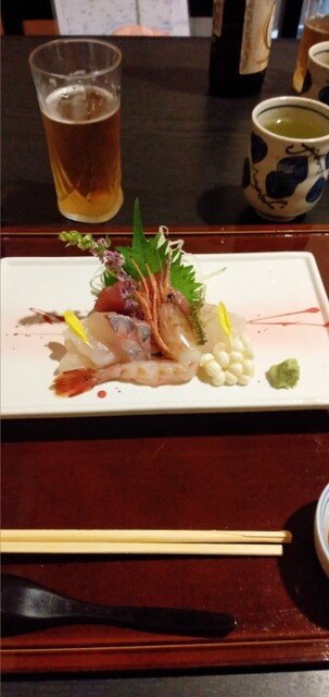 メインのどんちっちアジのお造り、余すこと載ってます。