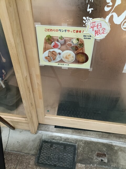 肌寒い昼下がり、JR岐阜駅からウォーキング…12時5分位に到着…先客は二組見事に女性客でした。奥のカウンターに座りランチで良い?と聴かれ焼き餃子でと注文しました。先にランチ部分が到着