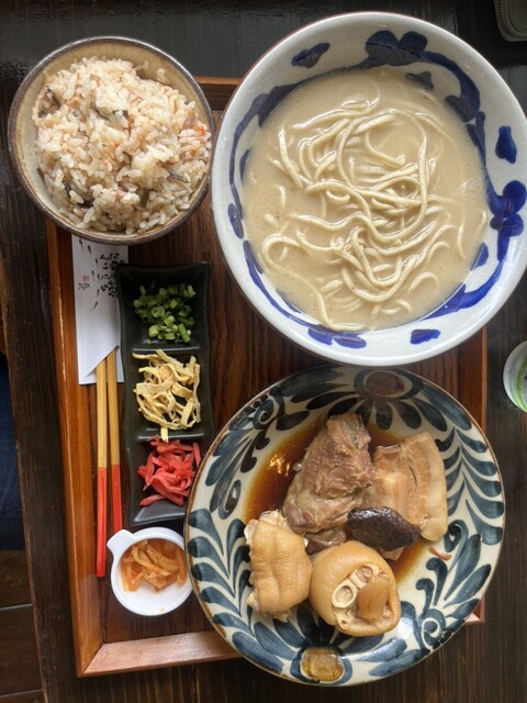 こってり好きの私はめちゃめちゃ美味しかった沖縄そばです。てびちもソーキもほろほろで味がしっかり染み込んでいて美味しいです。こってりかあっさりが選べます。そば単体でも味がしっかりしていて美味しかったです。今度はお魚も食べてみたい。また必ず行きます。