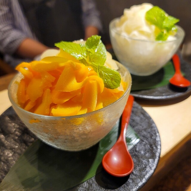 かき氷は桃、梨、イチゴから選べて、私は桃にしてみました。