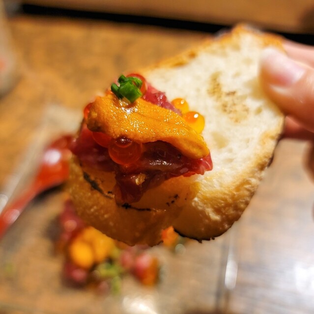 最初はそのまま、その後は軽く炙ったパンに乗せて。