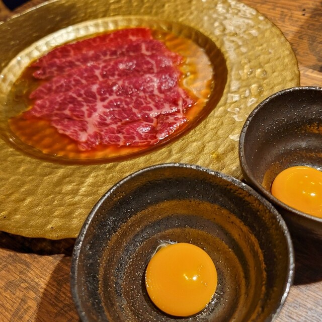 お肉を食べた後は、タレがしっかり溶け込んだ卵黄に