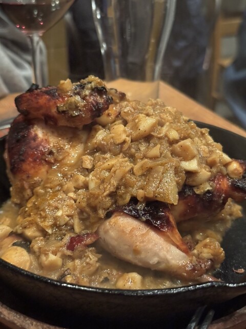 その後は定番のお肉屋さんのポテトサラダから、好きなお肉&ワインを頼み、締めはチキンボム&パスタ