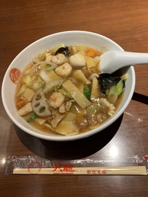 注文したのは、広東麺(1,390円)と餃子1.5人前(1,990円、3人でシェア)を注文。最初に広東麺が到着、海鮮たっぷりで麺はやや太麺といったところです。まずはスープから寒くなってきたところで、熱々の餡も相まって美味しい!程なくして餃子が到着、まずは何も付けずに一口パクリ、スープが溢れ出てきて美味しい!次に、酢・醤油・カラシで食べました、私はこの食べかたが好きですが、酢・カラシで食べるのが通らしく、溢れでるスープで小皿のタレは味変されます。