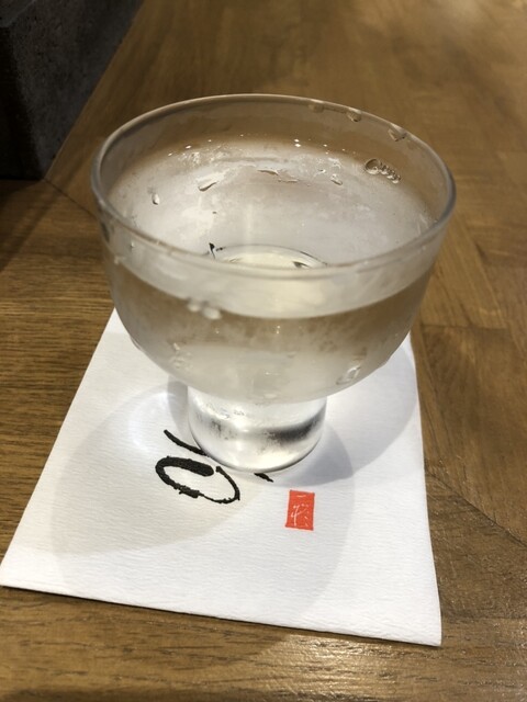 「本日の隠し酒」は広島の純米吟醸幻のひやおろし¥630とのことでそれを注文。写真だと全部水と見分けがつきませんねースンマセン!