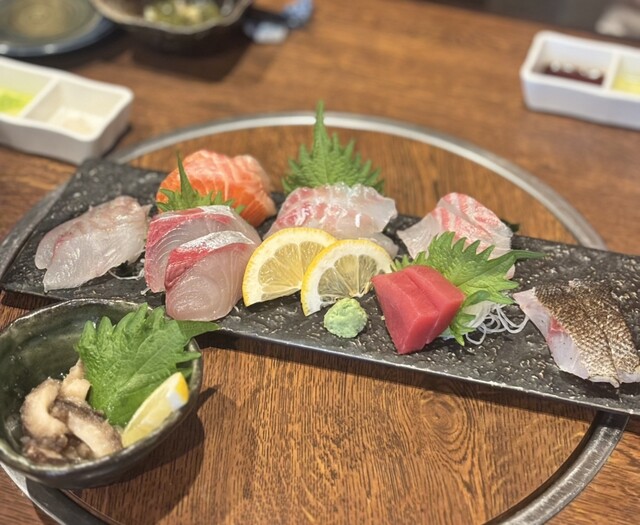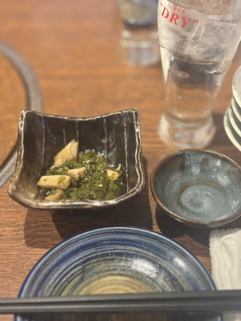 お醤油、枝豆のジェノベーゼ、藻塩などをつけて