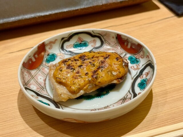 「白子の軍艦」は驚くほど立派で、昆布締めして軽く焼いているとのこと。