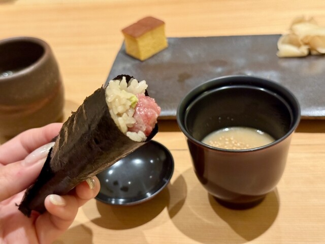 コースとは別で追加でお願いした「ネギトロ」は、目の前で葱とトロを叩いて仕上げてくれるライブ感も楽しく、最後まで幸せな気持ちになりました。