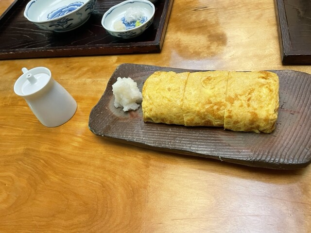最初に卵焼きが到着。そのまま食べると、出汁の味がしっかり効いていて、絶品‼️