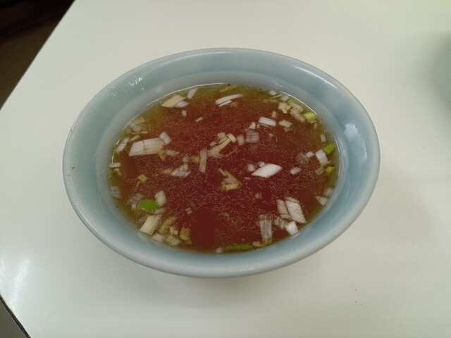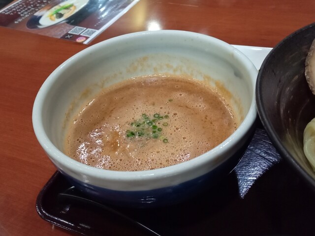 つけだれは半透明。魚粉がのっていておそらく煮干と思われる...