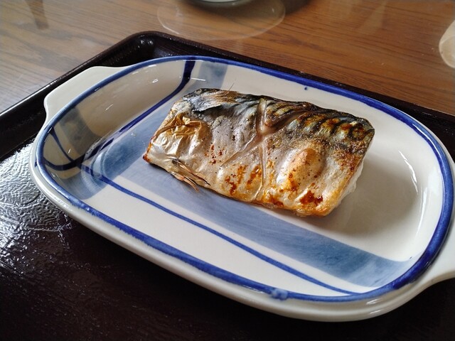 さばの塩焼き(サラダと小かけうどんもつくが遅れて配膳された)