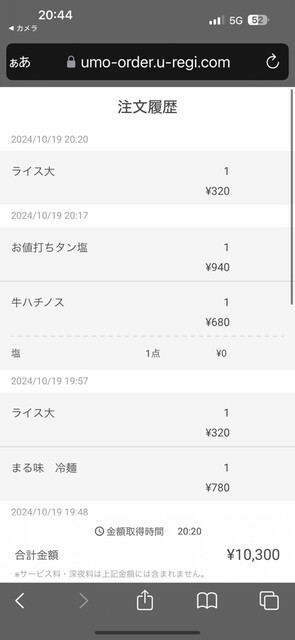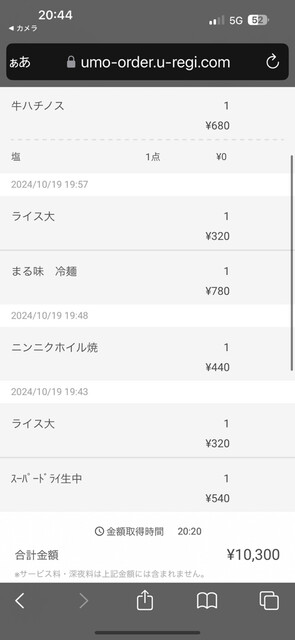 お会計はお腹いっぱい食べてビール飲んで10300円!