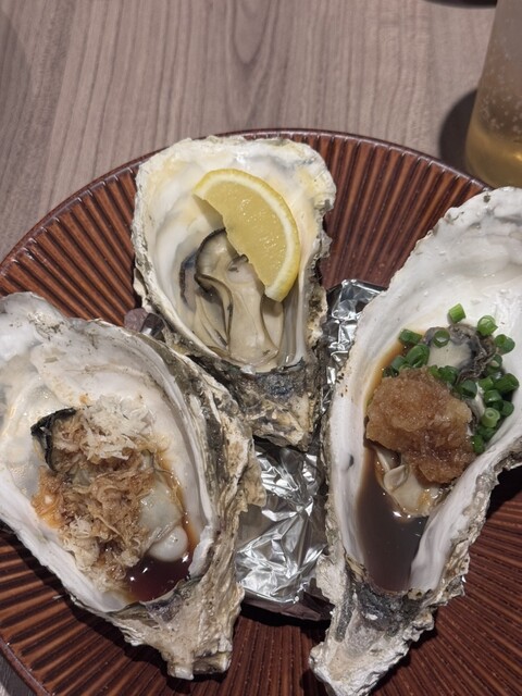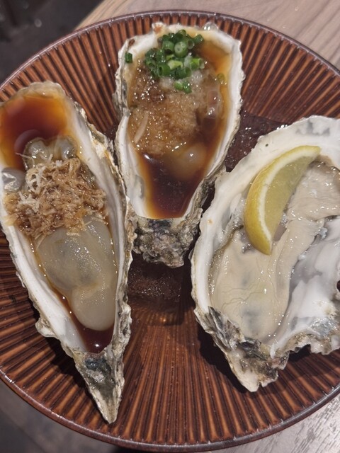 レモン、山わさび、ポン酢と味のバリエーションが楽しめる。身は肉厚でミルキー。これは必食。