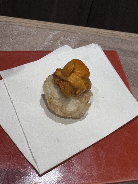 雲丹の旨みが濃厚。ホタテはレア気味で、天ぷらとは思えない仕上がり。かなり美味しい。