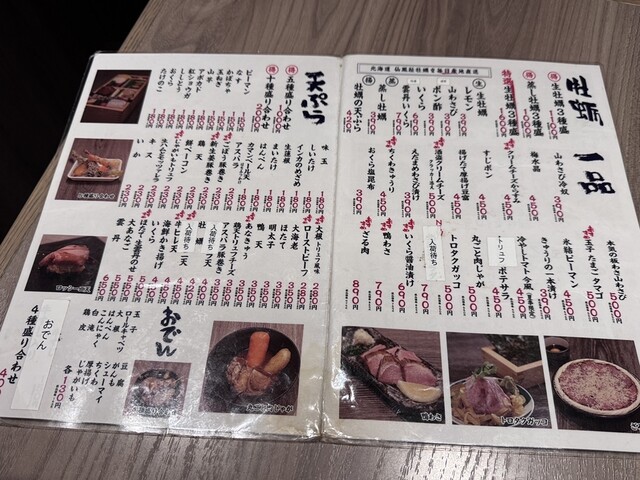 天ぷら、牡蠣、おでん、そばと守備範囲が広く、何を食べても満足度が高い。使い勝手の良い一軒。