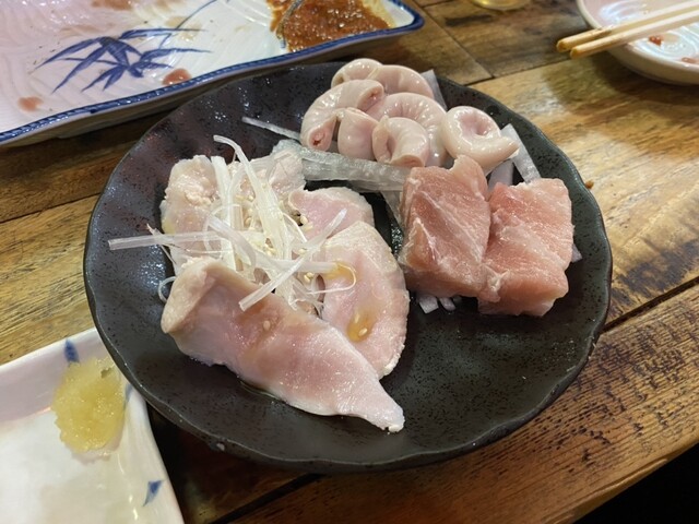 ◎浦和弁慶3種刺し盛(マグロカマ・コブクロ・ガツ) ¥880