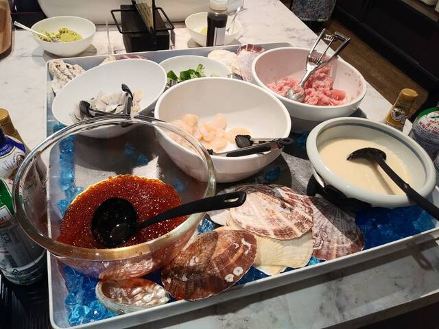 海鮮丼はのせ放題でイクラやホタテが人気のようですが