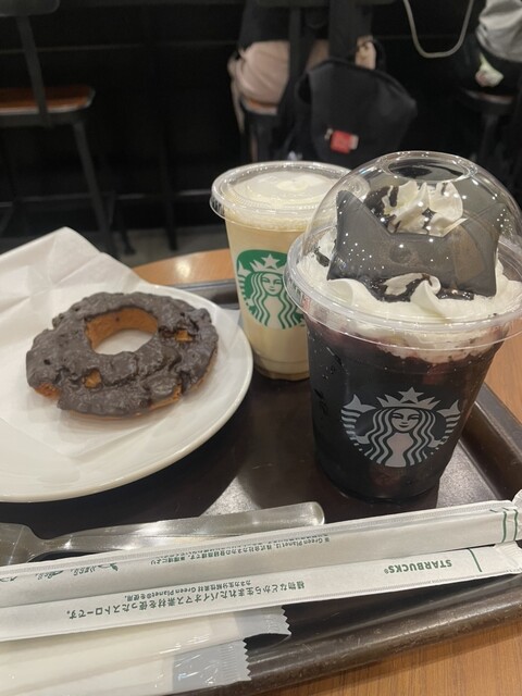 列車までの、空き時間。娘がニャンコのアサイーが飲みたいと言うので、コチラへ。お昼ご飯には少し早い時間だったので、スペースもゆったり。オールドファッションが、食べたいので、甘さを抑えた物が欲しいなぁと、カウンターでゴニョゴニョ話してたら、店員さんが、甘さをカスタマイズ出来るのでおっしゃってくださいね。と、にこやかに提案してくださったので、私はクラシックシロップ控えめのアフォガードフラペチーノ。娘はクリーム多めの可愛いやつ。良い時間でした♪
