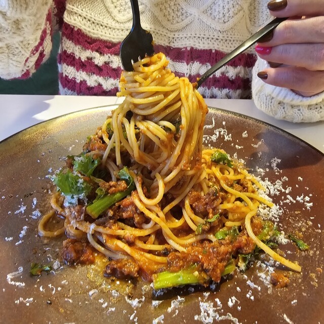 しらすがたっぷりで 柑橘には 八朔が使われておりました。どちらもおいしいパスタでした。