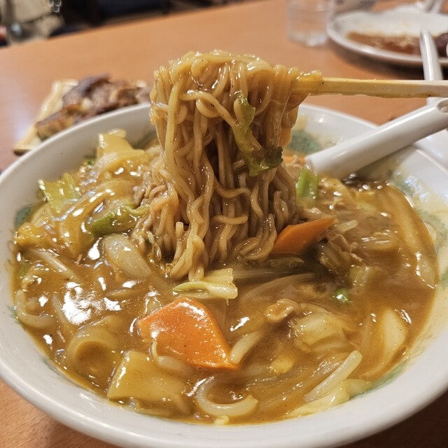 カレーラーメンは、ピリ辛のあんかけがスープに麺に絡み、意外な美味しさ!