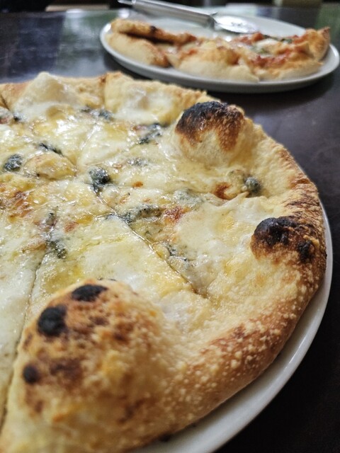 ピザのクオリティ 薪窯で焼く本格派、モチモチ生地が高評価。マルゲリータは定番、ゴルゴンゾーラは濃厚チーズに蜂蜜をかけて…甘じょっぱい誘惑に完全降参。