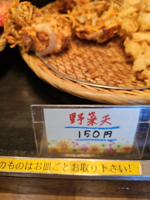 野菜天は衣がサクッと軽く、素材の甘みが引き立ちます。からあげはジューシーで、揚げたてならではの熱々カリッと感が最高。