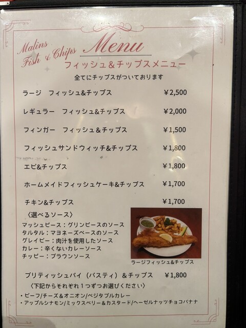 フィッシュ&チップスはレギュラーを店員さんおすすめのマッシュピースソースで、エビはタルタルで食べました。ビネガーをかけると更にいい感じに味変できます。試しに頼んでみたやや大きめエビがプリプリで良かったです❣️チップスも大きめカットで表面カリッと中はホクホクで食べ応えあります。片方だけチップスにすれば良かった…残してしまってごめんなさい…こんなにボリュームあるとは