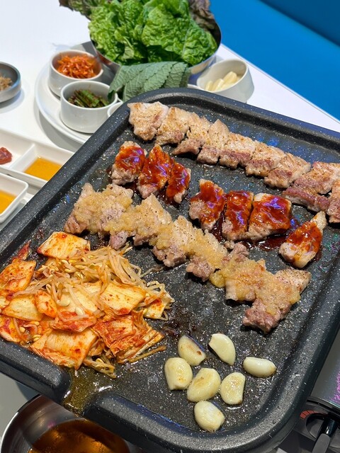 サムギョプサルは薬味の種類が多くて味変を楽しめました!