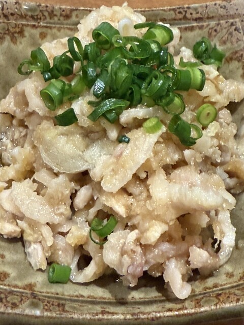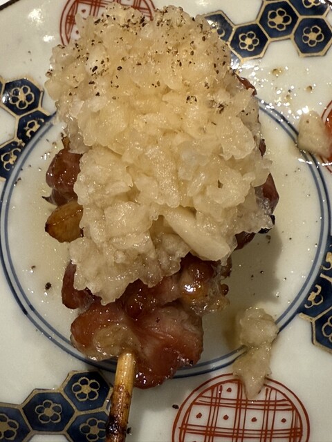週末に予約で伺いました。奥のカウンター席に案内頂きます。自分達含めて3組が、いずれもコースで同一時間スタートでした。付き出しは朧豆腐と野菜サラダ。程なくして鳥刺しが来ます。胸のタタキ、モモのきずし、胸の昆布締め、いずれも鳳凰美田に良く合います。酒器も可愛いもので好印象。そうこうしてる間に焼物が来始めます。ささみが過去一番というくらい柔らかくジューシーでびっくりしました。せせり、ねぎまといずれもジューシーで旨い!酢もつ、唐揚げをはさんでる合間に日本酒は群馬泉に交代です。つくねは食感も素晴らしくて断面撮りました。里芋の焼きも絶品で、追加でカマンベールフライを頼みだいやめソーダと楽しみつつ、締めの茶漬けまで申し分なし。コスパも素晴らしく、再訪間違いなし!ご馳走様でした!