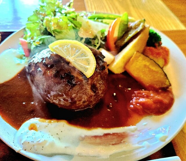 ハンバーグはボールの様にまん丸で大きく食べ応えありそうだったよ(^з^)-☆