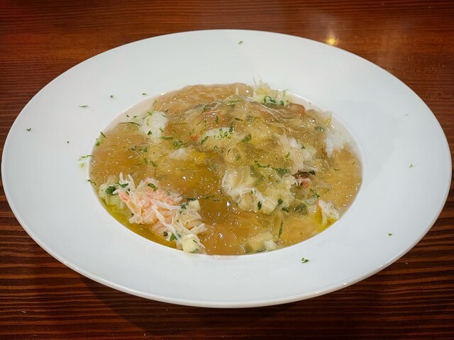 ずわい蟹と根セロリのムースと甲殻類のジュレ