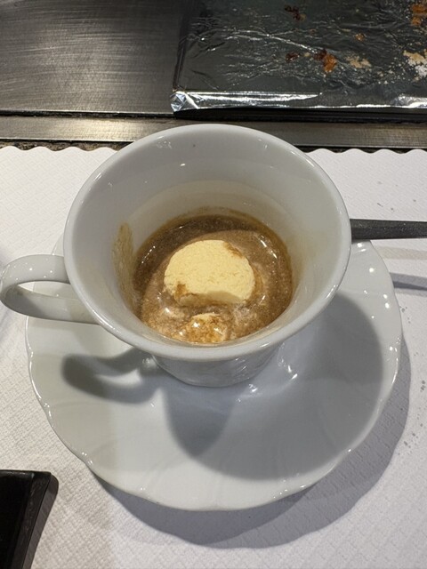 前菜、スープ、サラダ、お肉、焼き野菜、白菜とお肉の炒め物、ニンニクとおこげの焼き飯、エスプレッソアイス
