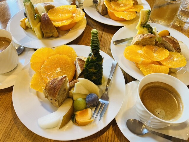 店内も落ち着いた雰囲気で、パンとフルーツを味わい、美味しいコーヒーで...