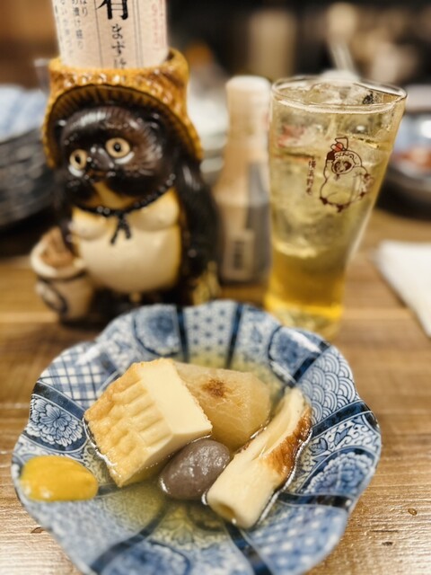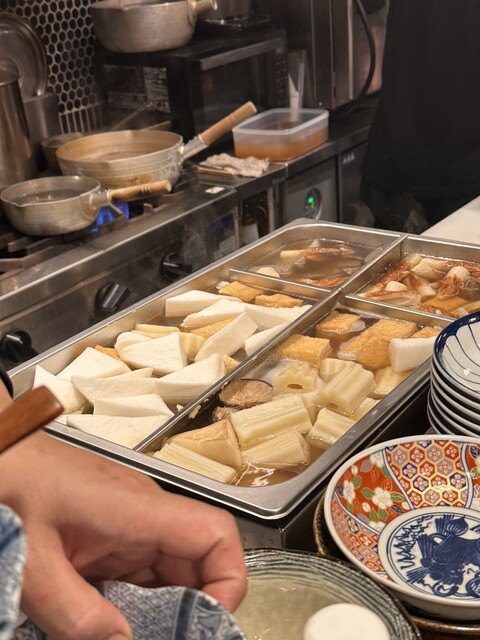 寒い日だったので温かいおでんが身に沁みます。ゆでたんはほろほろでワサビをつけて食べるとピリッとして、お酒が進みます。